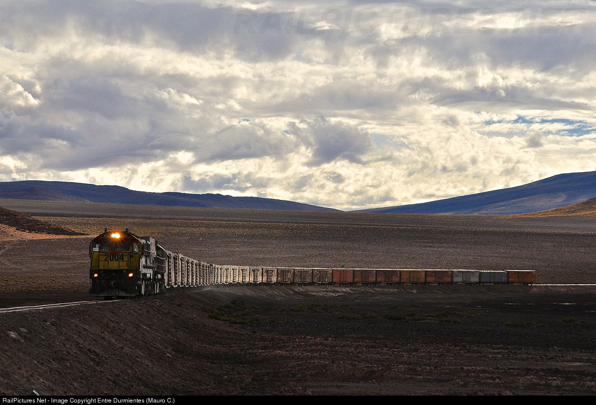 Evening in Ascotan, in the heights of Andes, with a dramatic sky in that moment who later became a thunderstorm, and FCAB #1250 continues the travel to Mejillones, in chilean altiplano.