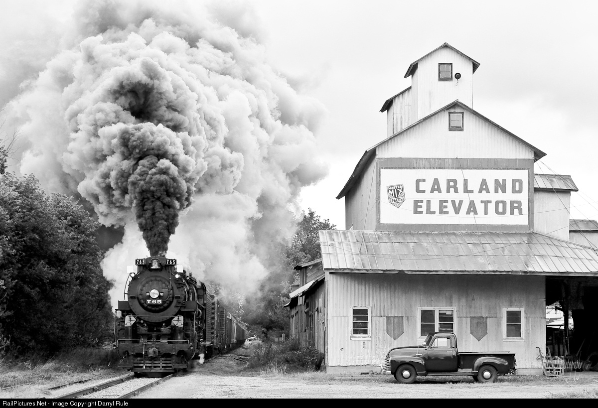 Nickel Plate Berk 765 puts on a dramatic show of big steam as she smokes out the Carland Elevator.