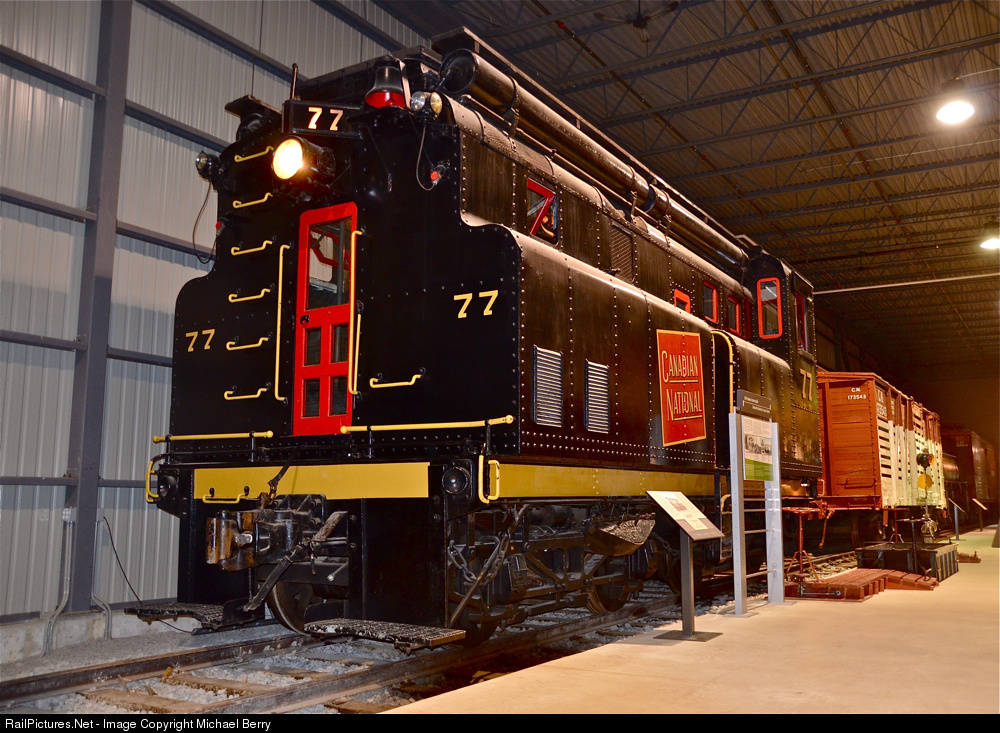 Pioneer diesel at Exporail. CN 77 (originally CN 7700) was CN's first diesel switcher (delivered in 1930). It was built by CLC (Canadian Locomotive Company) in Kingston, Ontario to a Westinghouse design. It featured what was advertised as a 'visibility cab car body' which allowed the engineer to see in both directions and was an improvement over boxcab designs of the time.