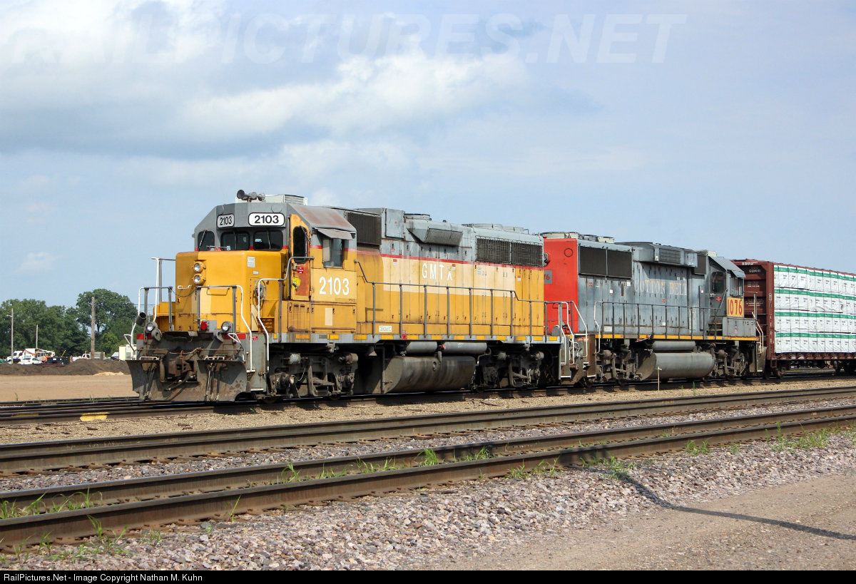 | GMTX 2103 rolls by me after putting together a local on the east end. Now it heads west for Menards about 10 miles to the west at MP 79 |