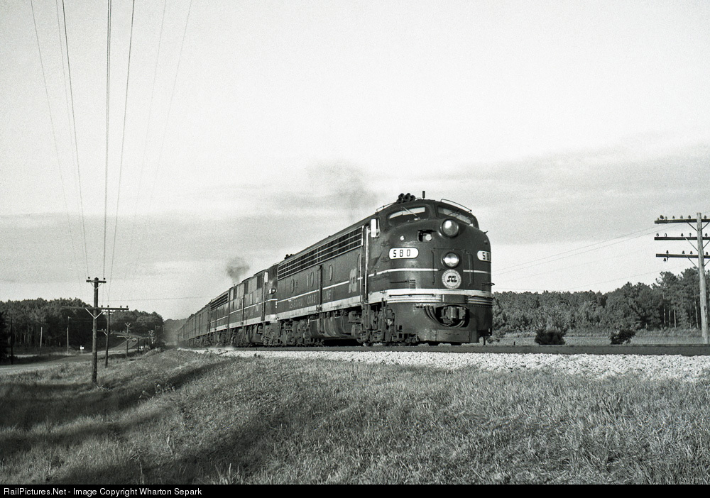 Evening shadows are growing long as Seaboard Coast Line No. 21, "Silver Star", is under full throttle as it begins its' uphill climb into Apex, NC. The train doesn't look very silver from this position, but 16 platinum Budd and Pullman cars do indeed follow the 4 heavyweight cars that occupy the head of the train tonight.