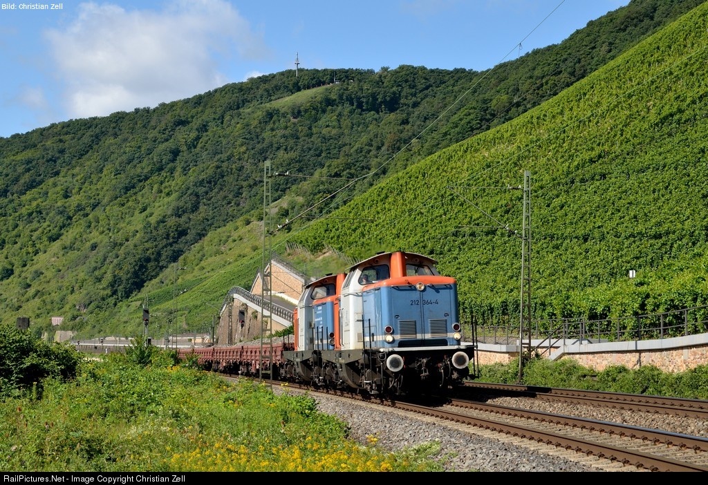 | With a large load of gravel, two V100s are running down the rhine valley. |