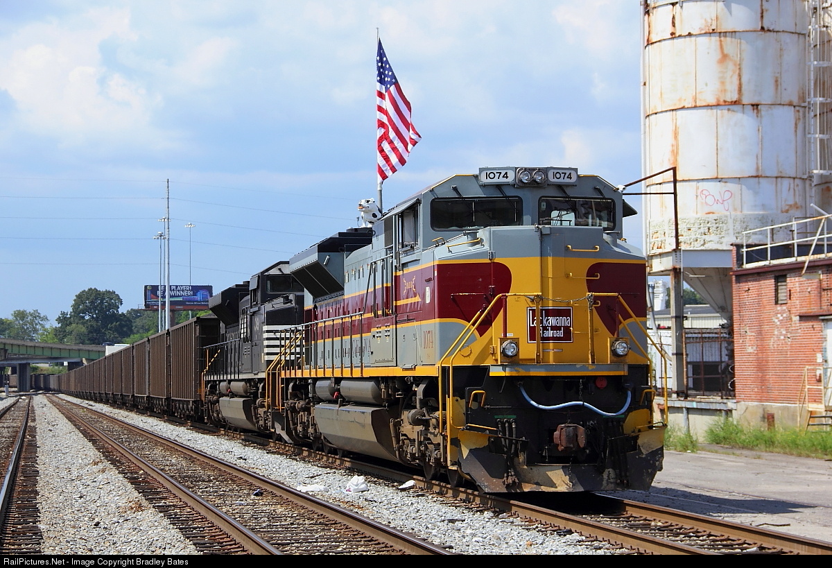 Norfolk Southern Coal Train 74Z tied down at 7th Avenue in Birmingham, AL. awaiting a new crew to take the Train on Eastbound to Wilsonville, AL. With the Lackawanna Heritage SD70ACe 1074 on the point