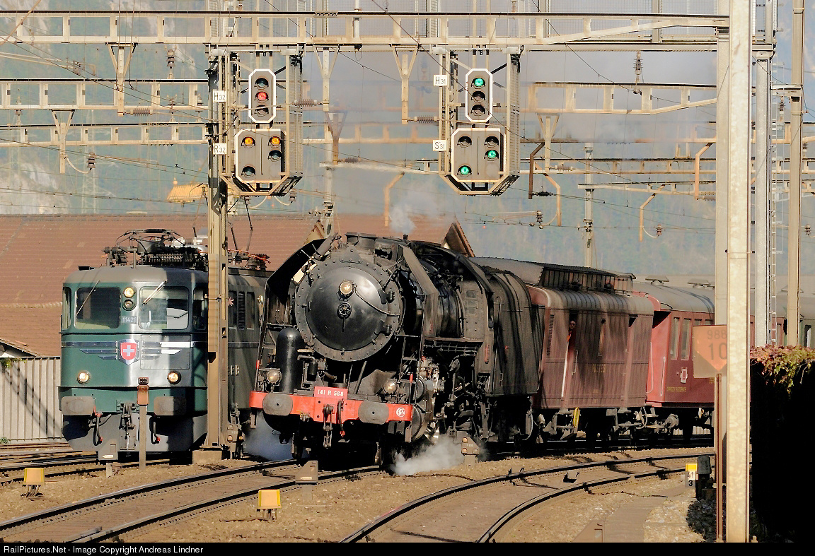| American steam locomotive on the St. Gotthard line: The locomotive R 141 568 descended from the halls of the Baldwin Locomotive Works in Philadelphia. After use in France, the locomotive arrived in Switzerland. Here it is used, as well as 141 R 1244, for special trips. Ae 6 / 6 11421 had the task of assisting the steam train when passing over the mountain. |