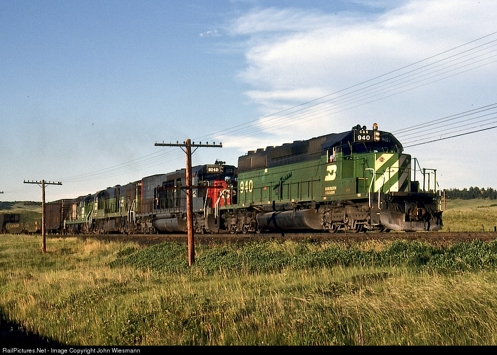 | BN SD40-2 6747, still with CS number 940 somewhere between Denver an Palmer Lake |