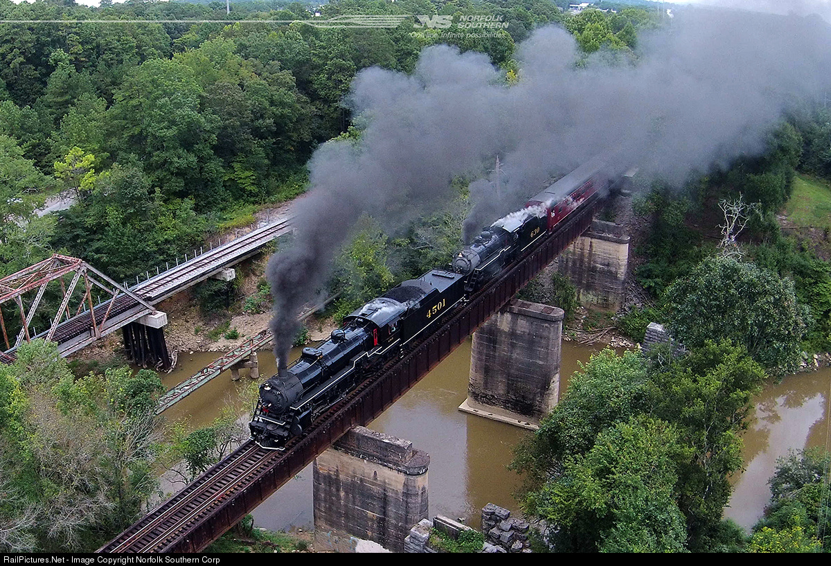 After a day of excursions during Tennessee Valley Railroad Museum's annual Railfest, Southern 2-8-2 #4501 and 2-8-0 #630 doubleheaded on their final run to East Chattanooga. Shortly after departing Grand Junction, the pair is seen here crossing Chickamauga Creek. Photo by Casey Thomason. For more information about Norfolk Southern, visit www.nscorp.com