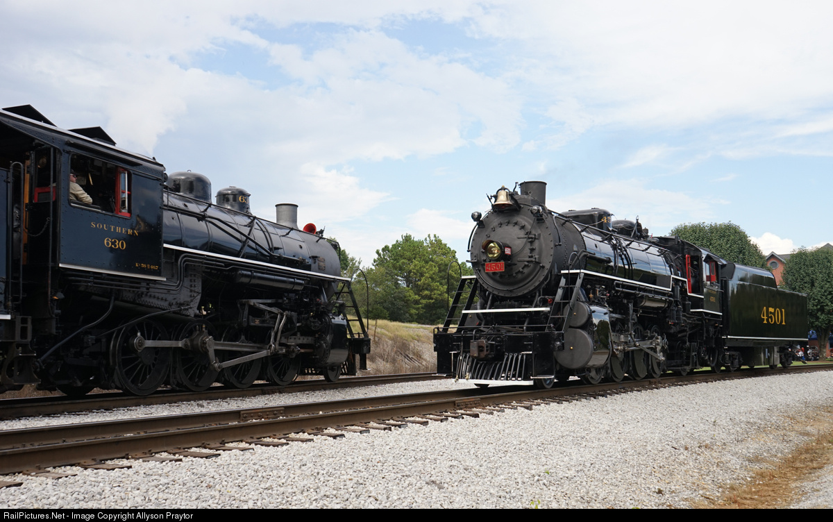 Southern 2-8-0 630 passes by 4501 during Railfest at the Tennessee Valley Railroad Museum.