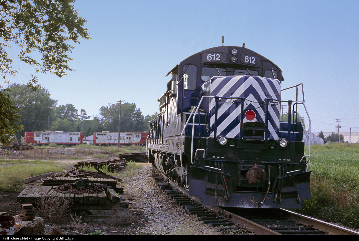 | IMRL power including SD9 No. 612 and a former Soo Line GP7/9 combo wait for their next assignment at Davis Jct., Illinois, southwest of Rockford. This junction at one time connected Milwaukee Road's mainline between Chicago and Omaha with lines to Wisconsin permitting the railroad to avoid Chicago congestion to reach Milwaukee. |