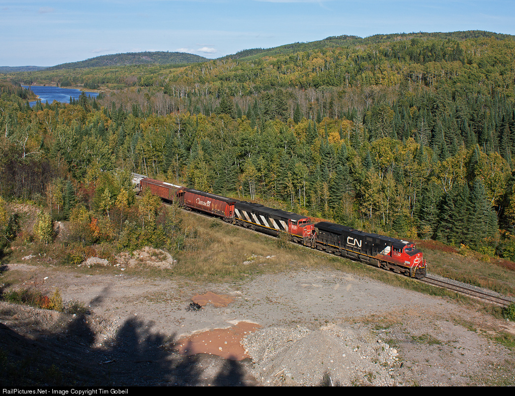 CN 840 rumbles through the Kam River valley enroute to its termination point at Thunder Bay. That's the mighty Kaministiquia River in the background with the CP Kaministiquia Sub in parallel on the opposite side.