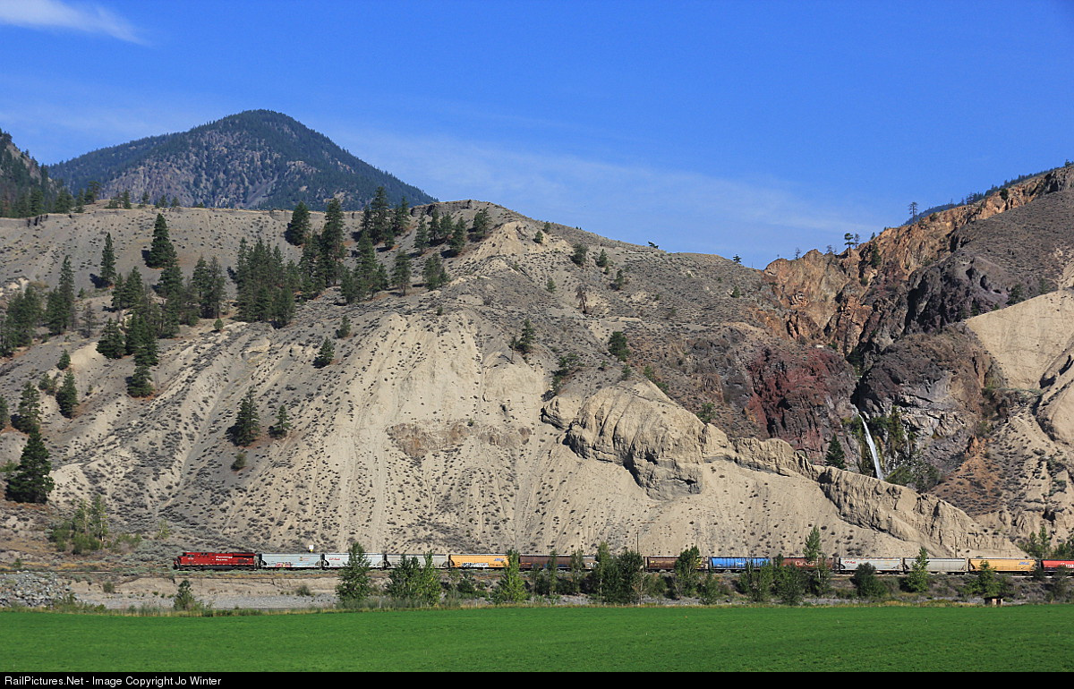 | A Canadian Pacific grain train has just left Spences Bridge, B.C., on Canadian National’s Ashcroft Subdivision. |