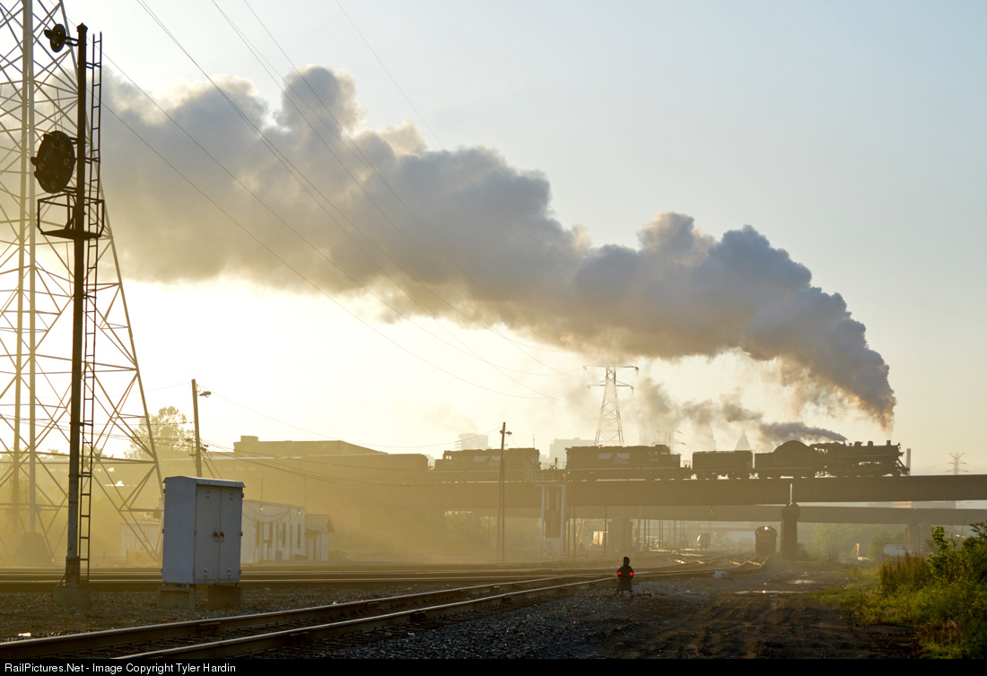 | The daily Cincinnati to Patio Yard local (CSX Q549) waits for signal indication out of CSX Yard Two as Southbound 957 lead by Southern RR 630 makes a spectacular exit from Gest Street Yard before crossing into KY to lead the excursion south to Danville. Southern Steam and B&O CPL's in the Queen city. It doesn't get much better than that. |