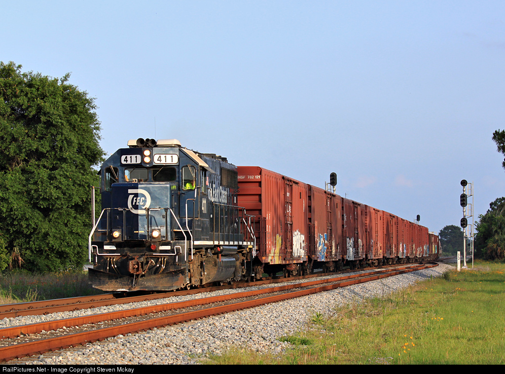 RailPictures.Net Photo: FEC 411 Florida East Coast Railroad (FEC) EMD GP40-2 at Araquey, Florida by Steven Mckay