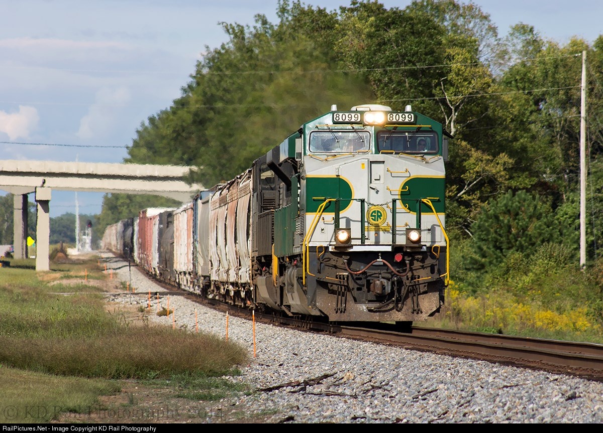 | Thundering down the straight away just north of Attalla, Alabama is NS M29 being led by one of famous NS Heritage Unit, Southern Rwy #8099. |