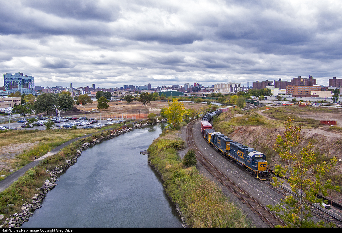 | CSX Local B749 makes the last leg of the journey to Oak Point Yard. After making their way around the Waste Management Facility, all that's left is to cross under the I-287 Bridge (Randall's Island Bridge) and join onto the Hell Gate Line. |