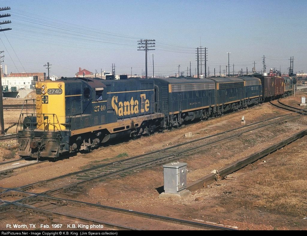 RailPictures.Net Photo: ATSF 2740 Atchison, Topeka & Santa Fe (ATSF) EMD GP7 at Fort Worth, Texas by K.B. King (Jim Spears collection)