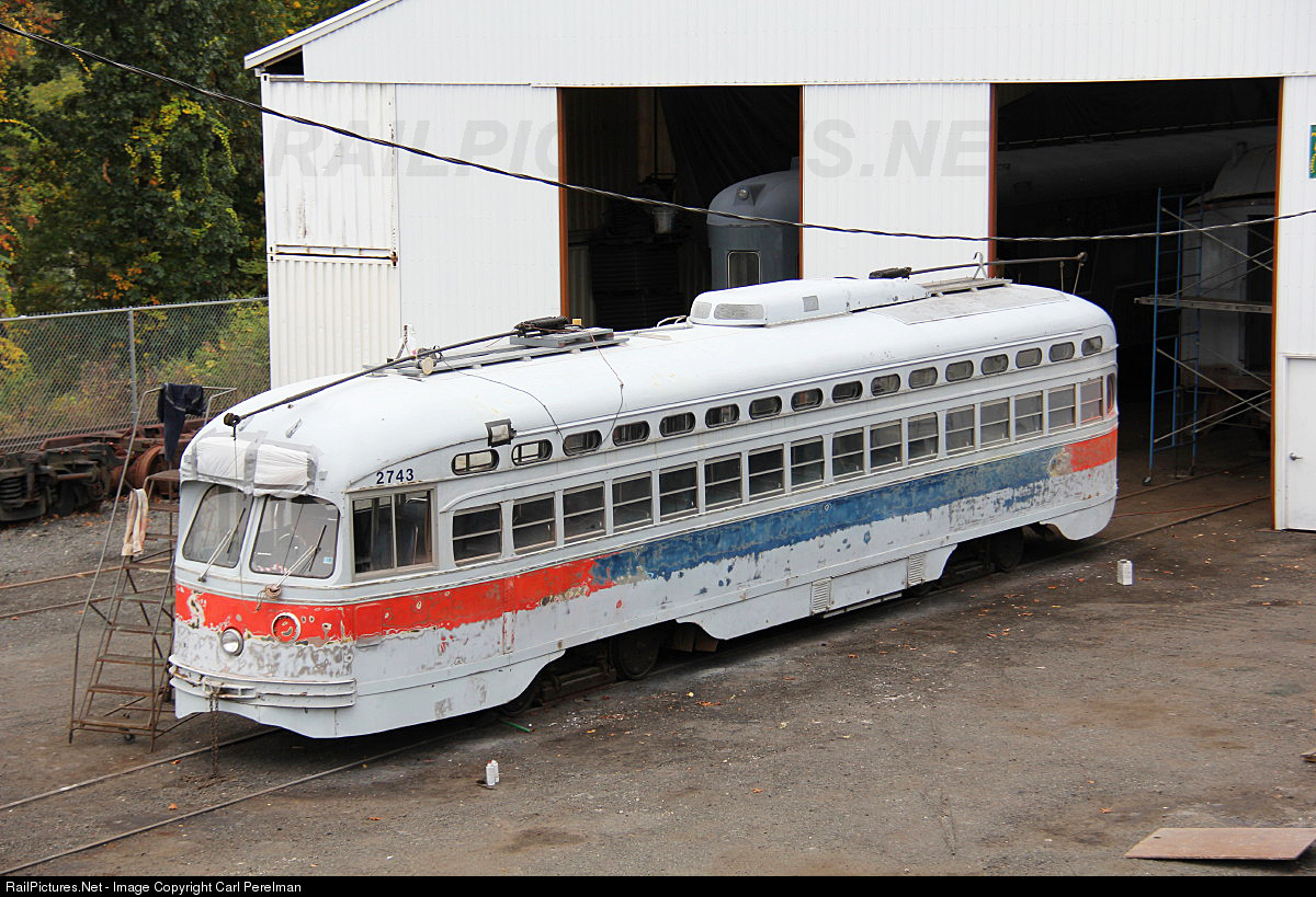 | StarTrak is performing a cosmetic restoration on former SEPTA PCC 2743 for the Rockhill Trolley Museum in Rockhill, Pa. The classic trolley car arrived in New Jersey on October 3, on board a flatbed truck. |