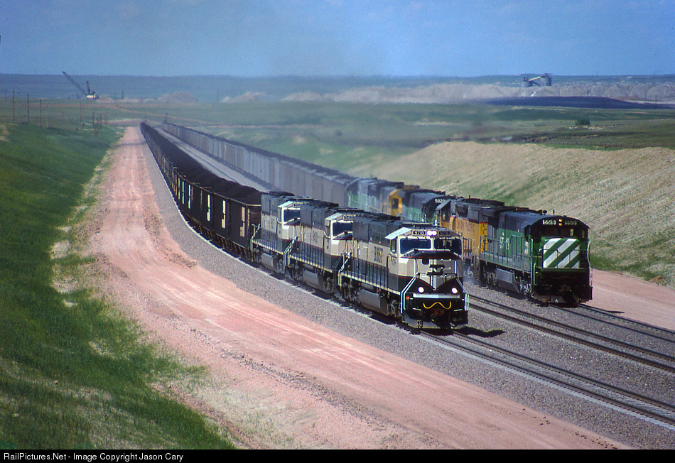 Orin Iron Horse Race......Raw horsepower against gravity. AC against DC. The 5 DC motors have slowly been overtaking the New AC power since leaving Converse Junction. The two trains will end the race in a dead heat - photo finish on the 1% Logan Hill. Summer of 1996.