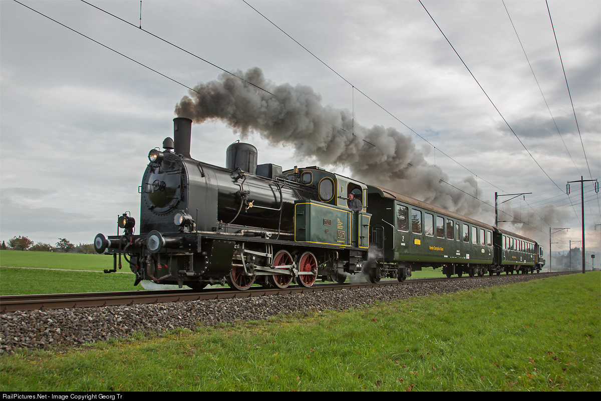 | Steamlocomotive Ed 3/3 "Muni" of the associaton for the preservation of steamlocomotive "MUNI" (VDM) with a charter train from Frauenfeld via Oberwinterthur to Etzwilen near Reutlingen. From Etzwilen the train ran two times as "Blues Train" to Rielasingen an back. The locomotive was built by Hohenzollern/Germany in 1922 as work locomotive for the Rheinische Braunkohlenwerke and ran later for BASF. |