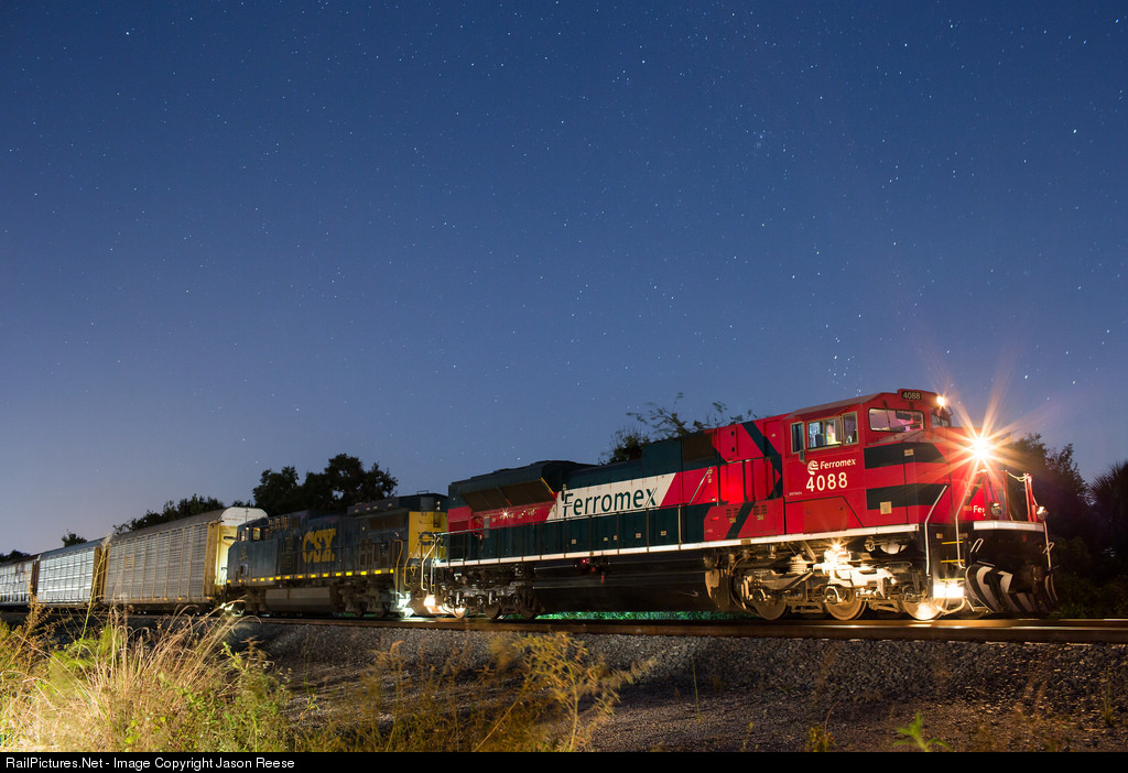 Ferromex #4088 SD70 ACe leading CSX Q235-20. It was pitch black at Knights siding when I caught him. Fortunately he stopped while waiting for Q188 and I was able to take a 30sec. night exposure.