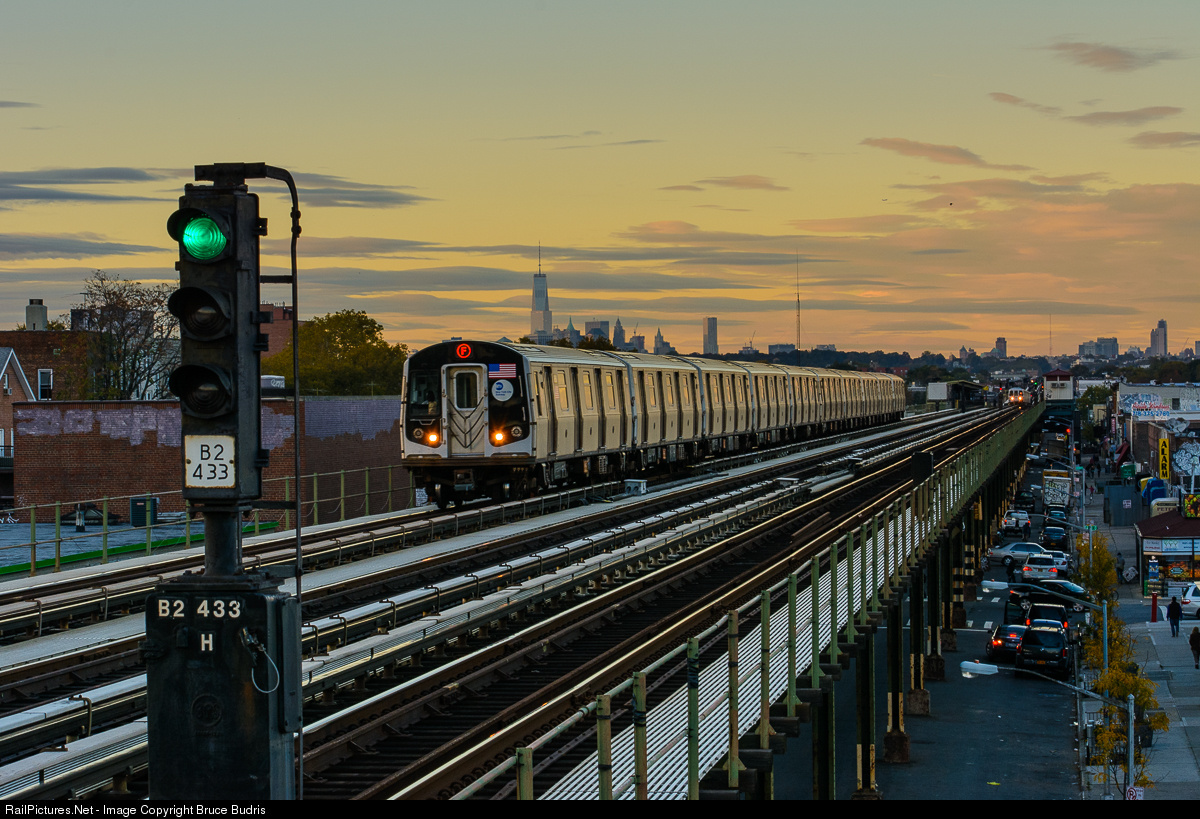 An MTA F Train saunters across the elevated tracks on McDonald Ave. with its cache of Brooklyn denizens returning from yet another work week in distant Manhattan. At this time of day, the trains move through in rapid succession. In a few stops, this train will converge at Coney Island Yards with its brethren the B, D, G, N and Q Trains - where some will rest until Monday morning.