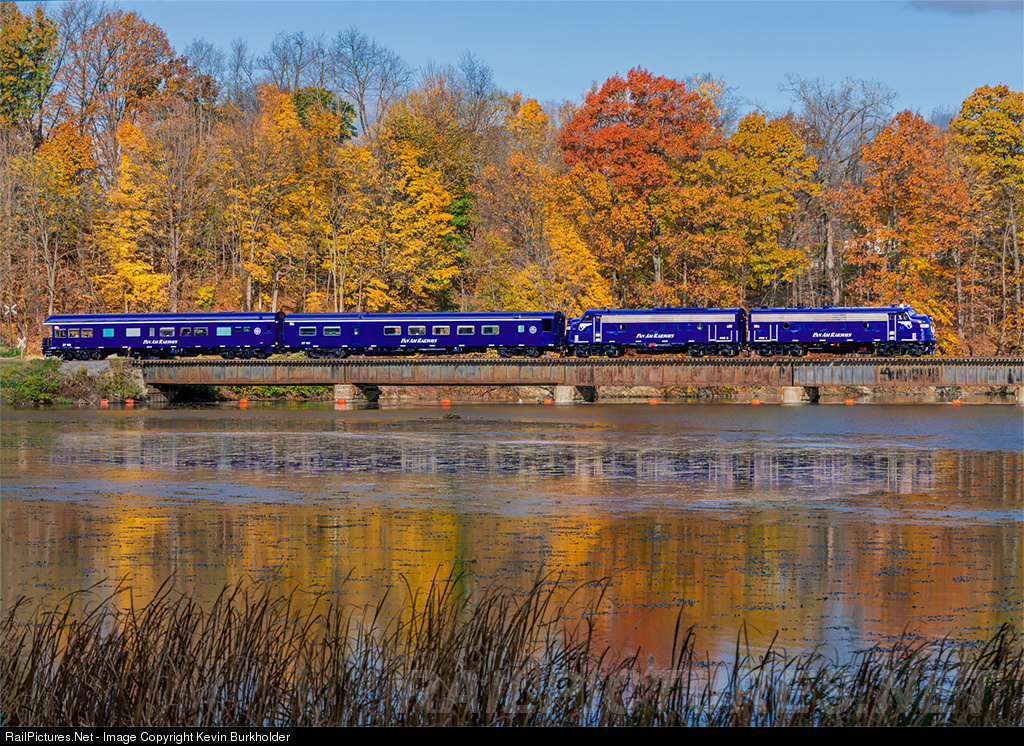 Kicking off a month of 'road trips' for the Pan Am execs and invited guests/shippers, Pan Am Railways Office Car Special (OCS) train is seen crossing the Hoosic River at Schaghticoke, New York. OCS-30 - with PAR FP9s PAR-1 and PAR-2 leading office cars ST 101 and 100 - originated at Mechanicville, New York and would terminate at Ayer, Massachusetts on this particular date.
