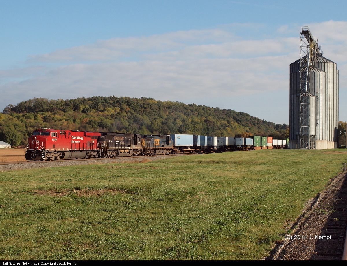 A late running NS 201 passes a farmers Co-op silo just south of Shippensburg on a beautiful Sunday morning. The CP/NS/CSX power set continued to cycle back and forth between Harrisburg and points south for quite sometime during the month of October.