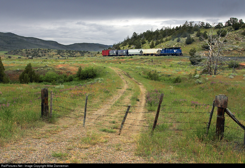 Montana Rail Link’s 844 local climbs the 2.2 percent mountain grade toward Harrison, Montana, over this scenic branch on the Sixth Subdivision. Usually operating only once a week to Harrison, the 5-car local is powered by MRL GP35 No. 403, grinding up the grade on June 16, 2014.