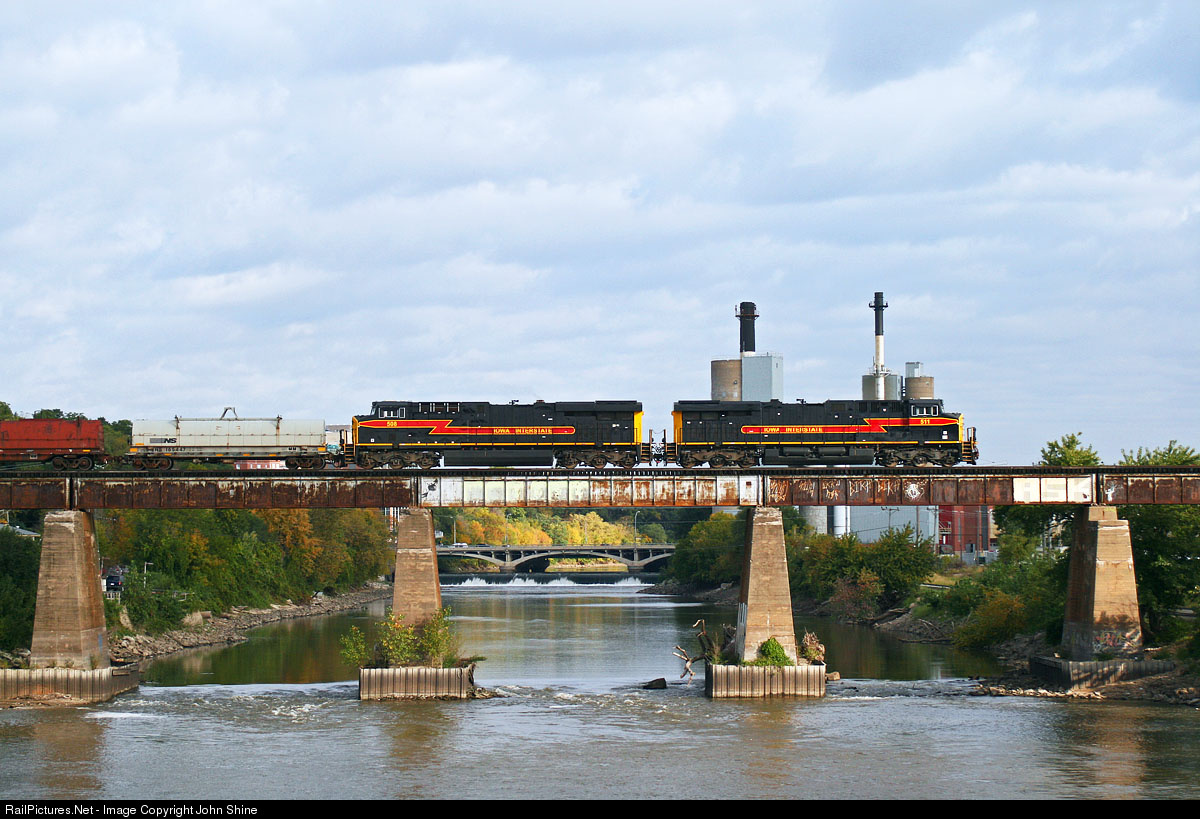 Iowa Interstate 511 and 508 slowly cross the ex-Rock Island bridge over the Iowa River as they approach the yard in Iowa City.