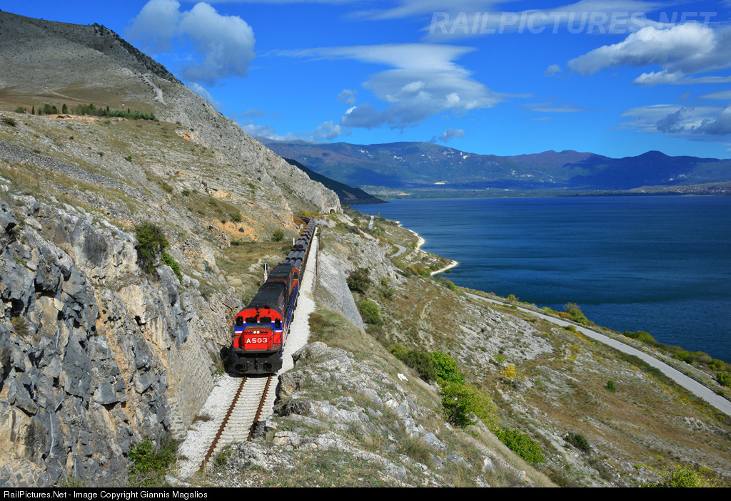 RailPictures.Net Photo: A-503 & A-452 OSE Hellenic Railways Organization MLW MX627 at Vegoritida Lake, Arnissa, Greece by Giannis Magalios