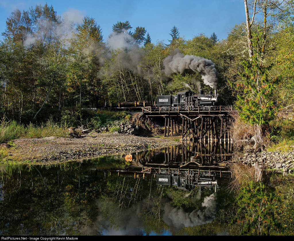 Although the #2 looks like a Shay, she wasn't born in Lima, Ohio. She's a 3-truck, oil-burning, Willamette Locomotive, built in 1929 by the Willamette Iron & Steel Works in Portland, Oregon. She's a native to the region, not a transplant. Some may ask: "What's the difference between a Shay and a Willamette....I mean, besides the manufacturer?" The answer is in the details. Willamette made a number of changes to Ephraim Shay's original design, all aimed at making a locomotive that was more powerful and efficient. All Willamettes were superheated, which meant they used less water and less fuel....key considerations in an environment where trackside fuel and water tanks were almost non-existent. Willamettes also had Walschaerts Valve Gear, which was an improvement over the Stephenson Valve Gear used on Shays. The Walschaerts Gear not only improves power and economy, but also makes the machinery easier to service. These differences are not something you can easily see in a photo, but new Willamette owners could definitely measure the difference in the performance of the machine. Willamette didn't exactly corner the market on new geared engines....they only built 33 of them...but the enhancements in their design gave the whole industry a kick in the butt and resulted in new and better products from their competitors, like Lima (which built most Shays) and Heisler.