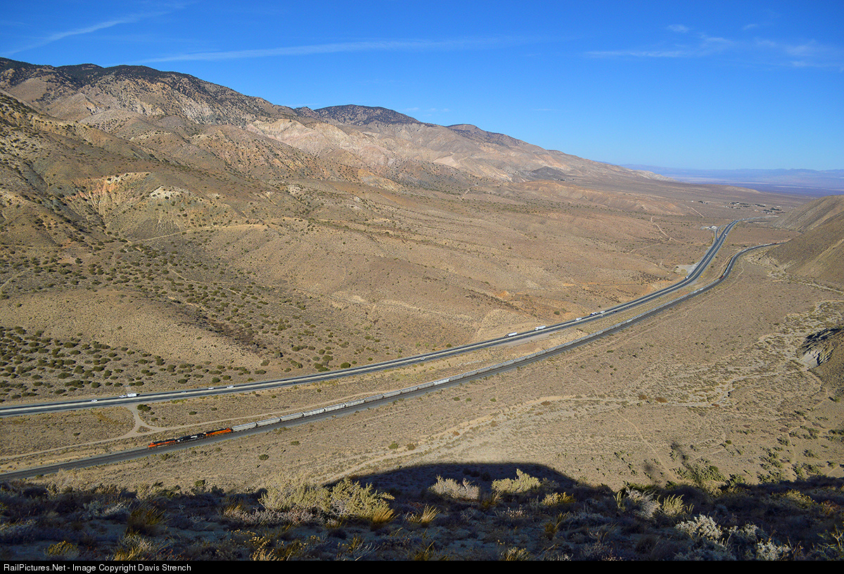 | After hiking up a grueling 4.4 miles into this location we were presented with this phenomenal view of the east end of Tehachapi Pass! Here a unit seed train bound for the valley presents itself in a 3x3x2 configuration, the perfect train to fill out this view! |