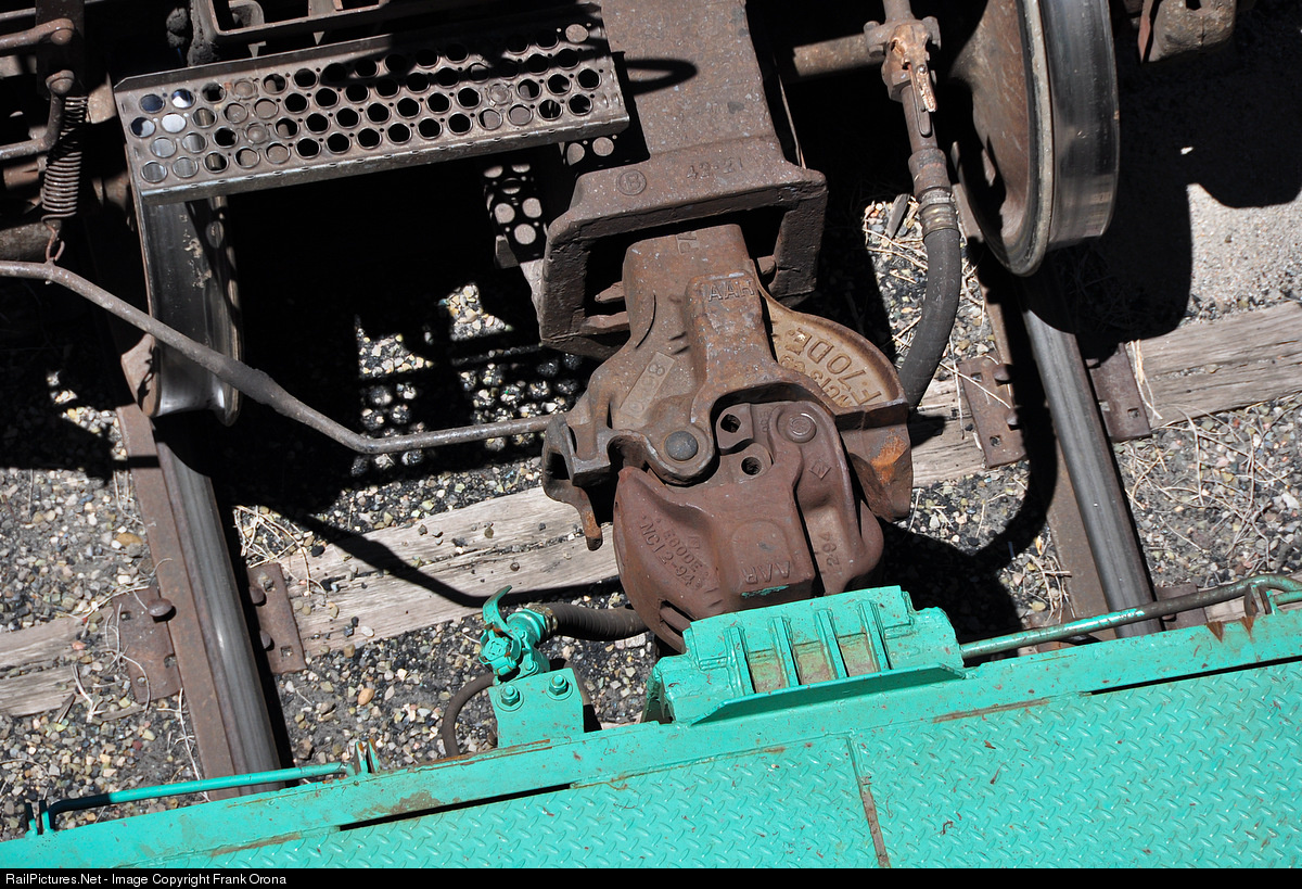 From this vantage point, you can see how the Type F (top, as indicated by the 'F70DE' lettering cast into it, Type H couplers have an 'H' cast into them) and Type E (bottom) couplers differ extensively from each other. With its larger overall size, the Type F is very encompassing of the Type E when coupled up to it.