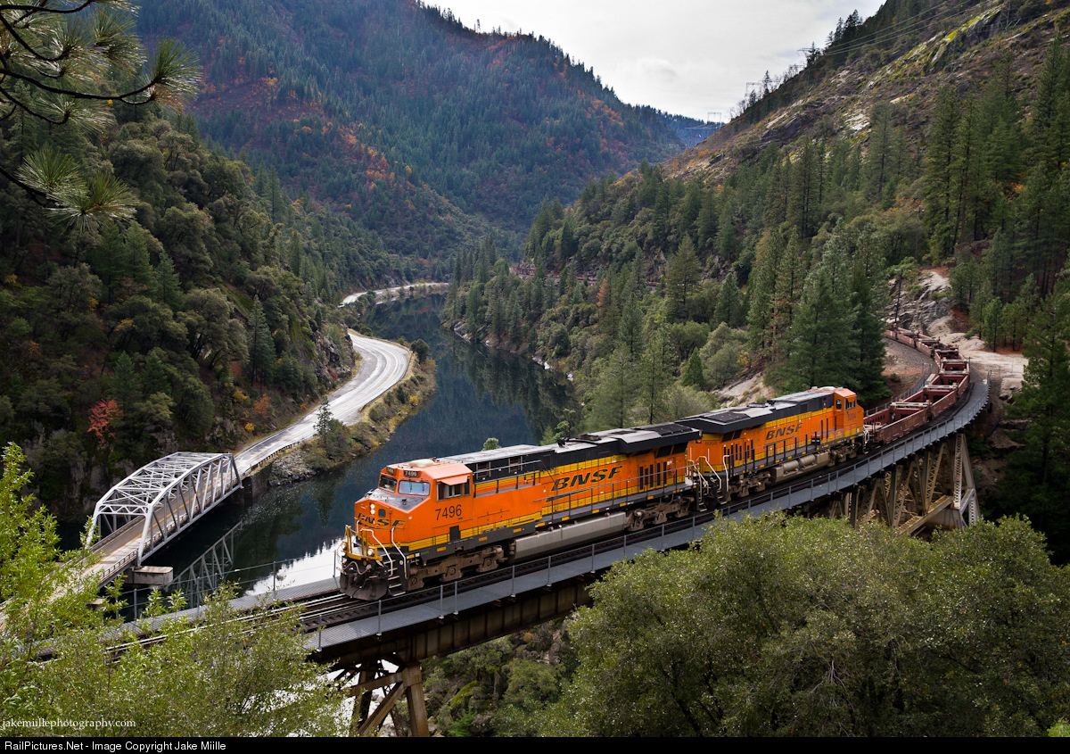 RailPictures.Net Photo: BNSF 7496 BNSF Railway GE ES44DC at Rock Creek Trestle, California by Jake Miille
