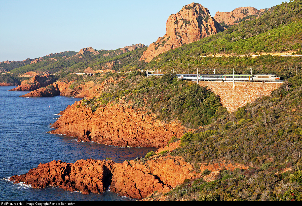 The night train Strasbourg - Nice is running along the Mediterranean Sea and the Esterel mountains.
