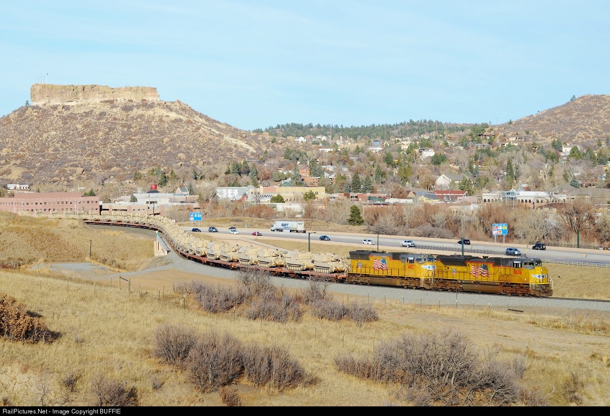 The 4th Infantry Division rolls through Castle Rock, Colorado on its way to Fort Carson, courtesy of the Union Pacific.