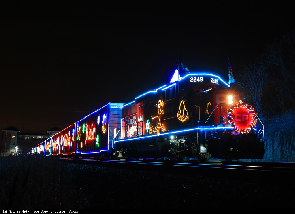 | With the main show going on several cars back at the Amtrak Station, myself and a two other photographers take the chance to get night shots of the 2249 and train without a lot of people crowding it. I always like the AC4400's on this train but I have to admit the ECO's do not look too bad decorated in lights. |
