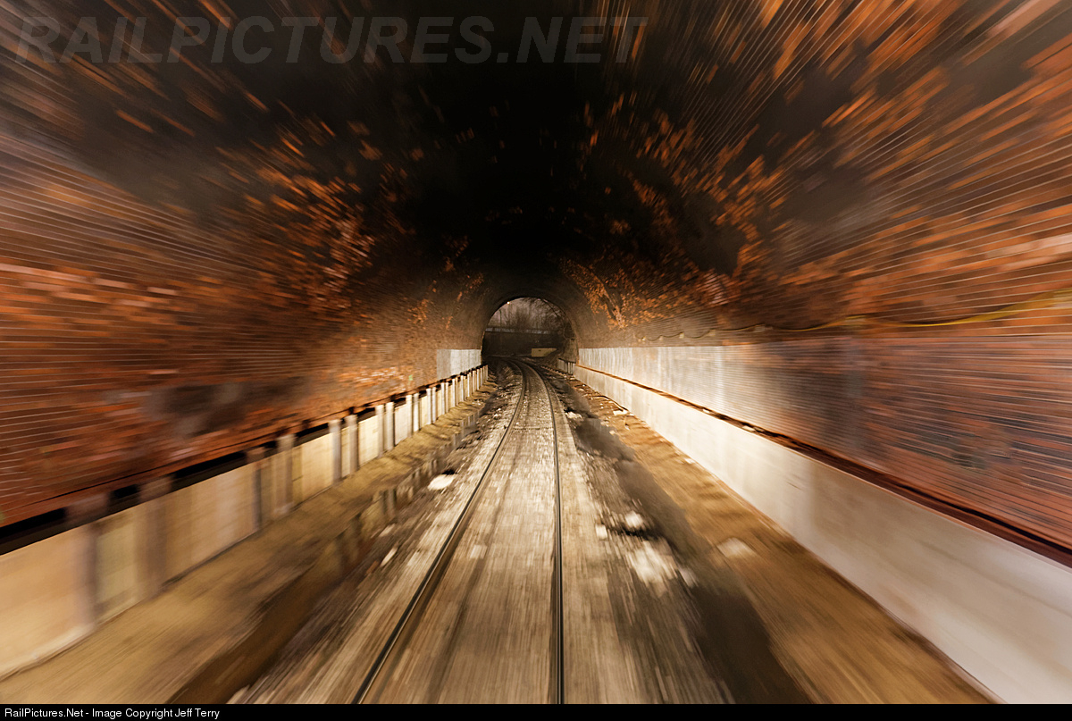 View from the rear platform of the Canadian Pacific Holiday Train as we roll westbound through the ex-Northern Pacific 1885 brick-lined tunnel under Westminster Junction.