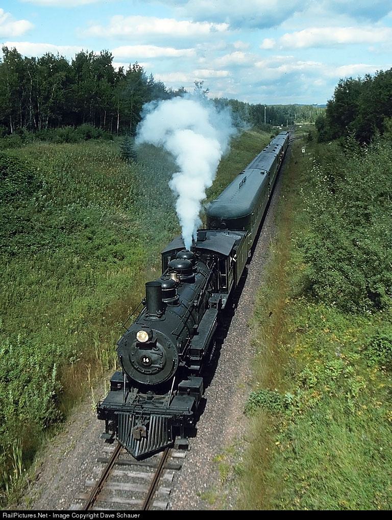 The star of the Disney film "Iron Will" leads a special passenger excursion out of Two Harbors for Duluth in 1993. The logging road Mikado is currently on display at the Lake Superior Railroad Museum in Duluth.