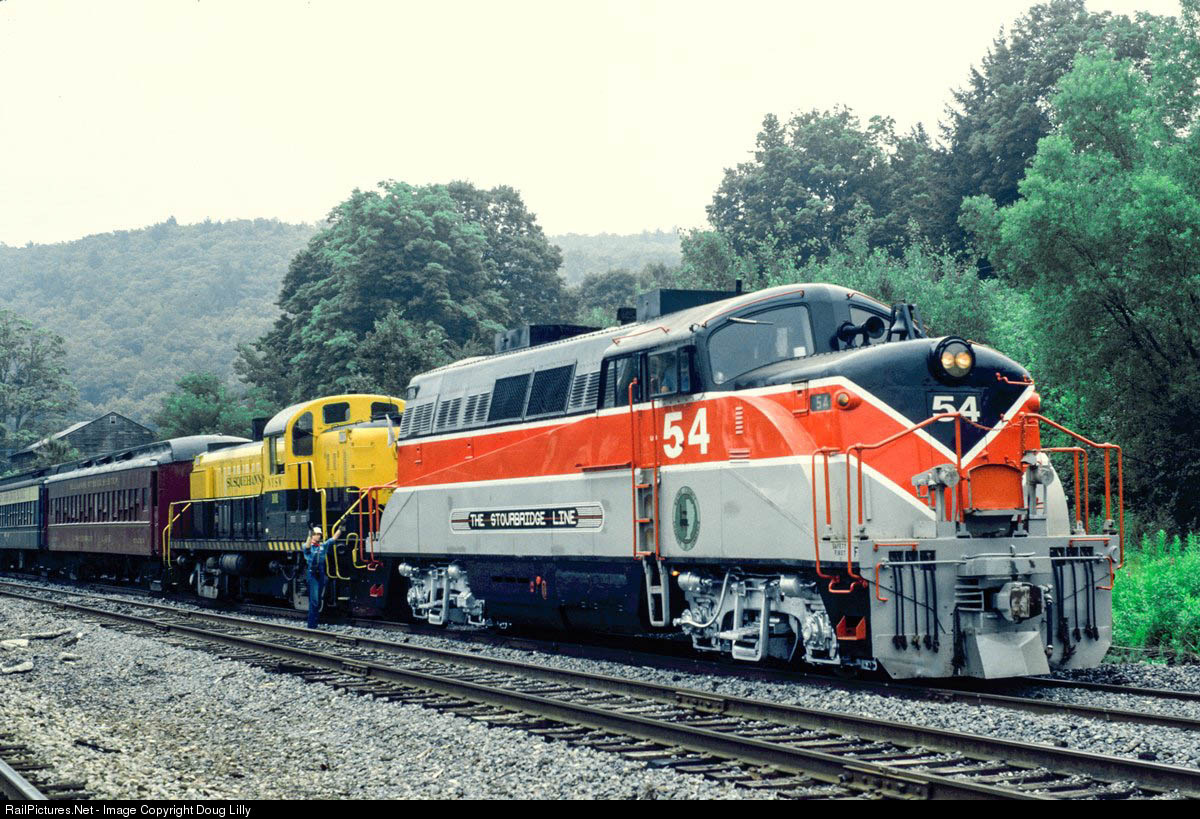 Her we see the 54 in better times coupling to NYS&W RS3 101 to leave Lackawaxen with one of the early excursions.