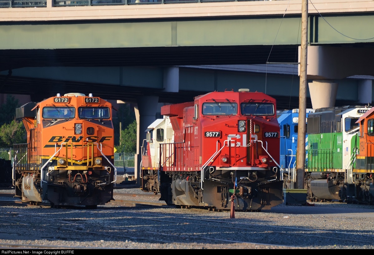 A clean Canadian Pacific AC4400CW sits among some other colorful power in the BNSF engine servicing yard.