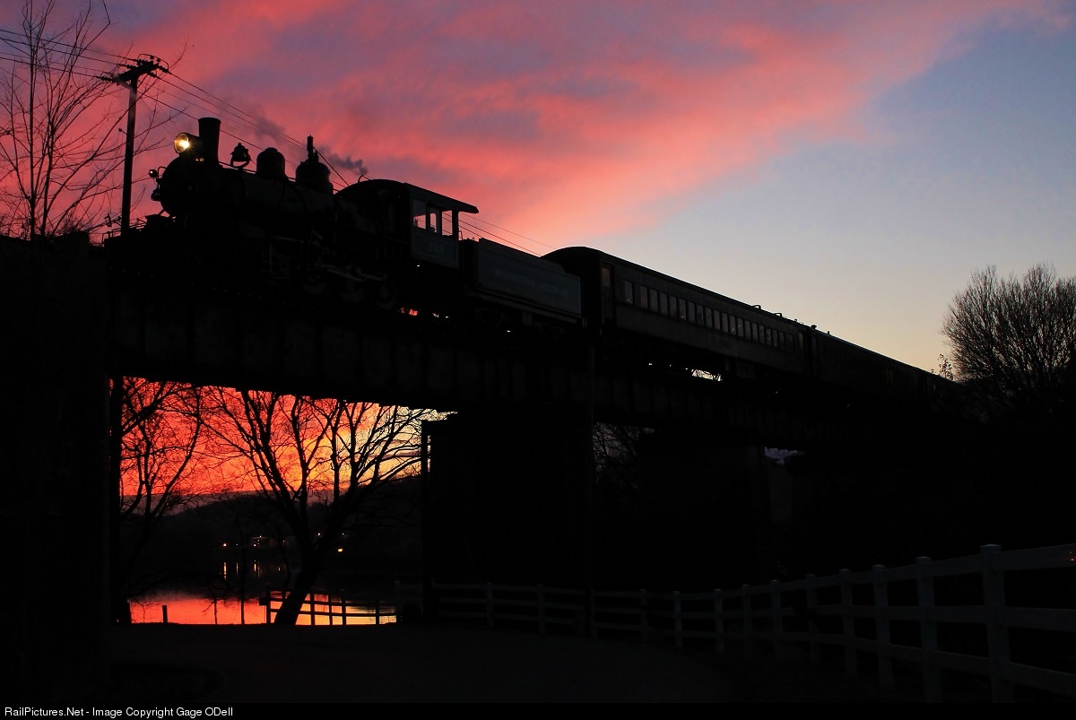 The Three Rivers Rambler starts its final trip of the year back toward downtown Knoxville as it crosses the Holston River Bridge with a beautiful backdrop
