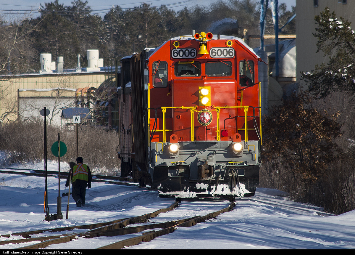 | The last move of a "Dave Schauer code blue'' Northern Wisconsin Sunday afternoon shows Wisconsin Great Northern Railroad with one outbound load of pulpwood from Johnson Lumber at Hayward, Wisconsin.