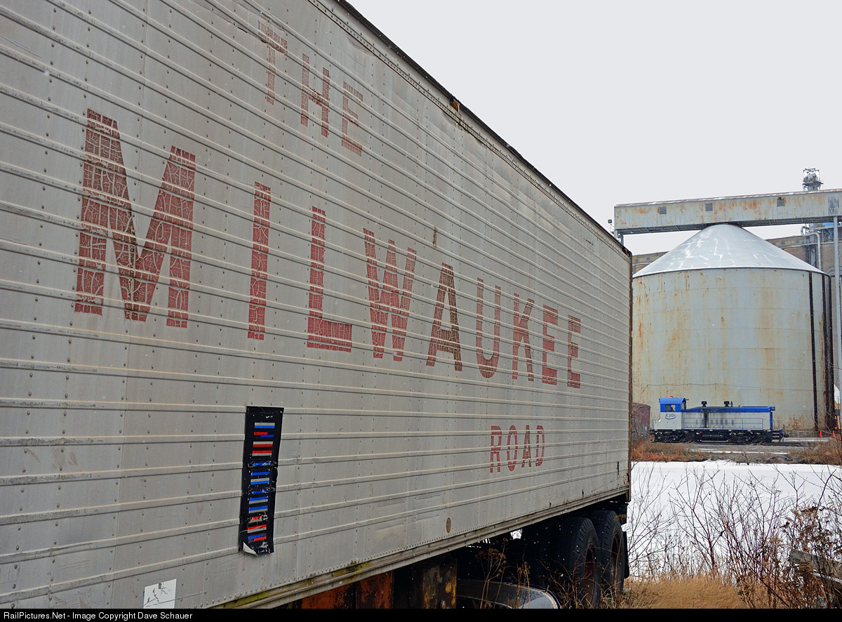 A dreary winter day is fitting for this relic of Milwaukee Road's intermodal empire. A former Soo Line SW9 now working for CHS (ILSX) idles in the distance.
