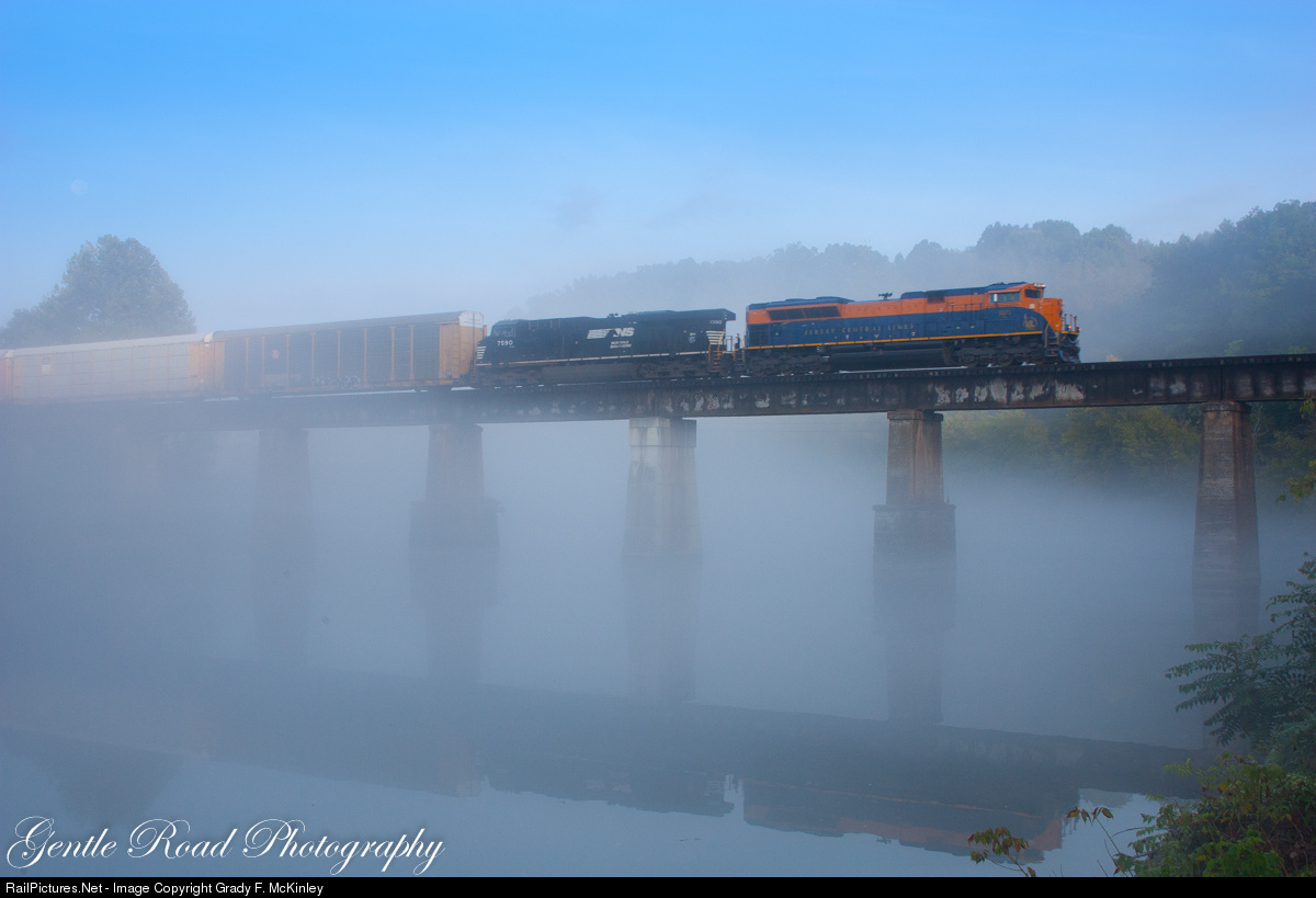 The fog is just starting to lift over the Holston river on this early September morning and 23G nears its crew change at Bristol some 10 miles away.