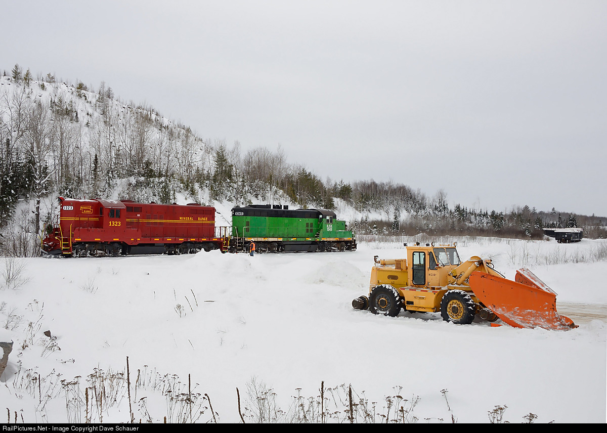 A Mineral Range train of empty covered gondolas has arrived at the copper/nickel processing plant and is about to run around their train for the shove into the loading facility.