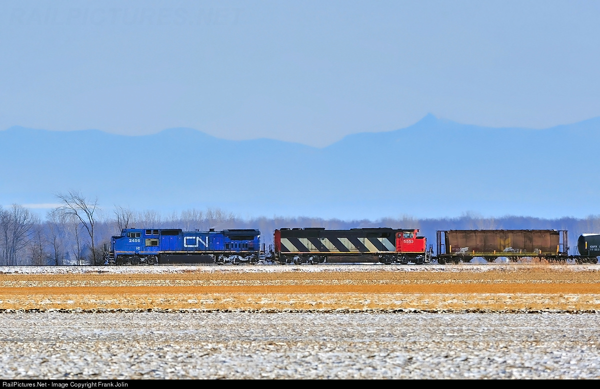 RailPictures.Net Photo: IC 2456 CN 5553 Illinois Central, Canadian National Railway GE Dash 8-40CM EMD SD60F at St-Blaise, Quebec, Canada by Frank Jolin