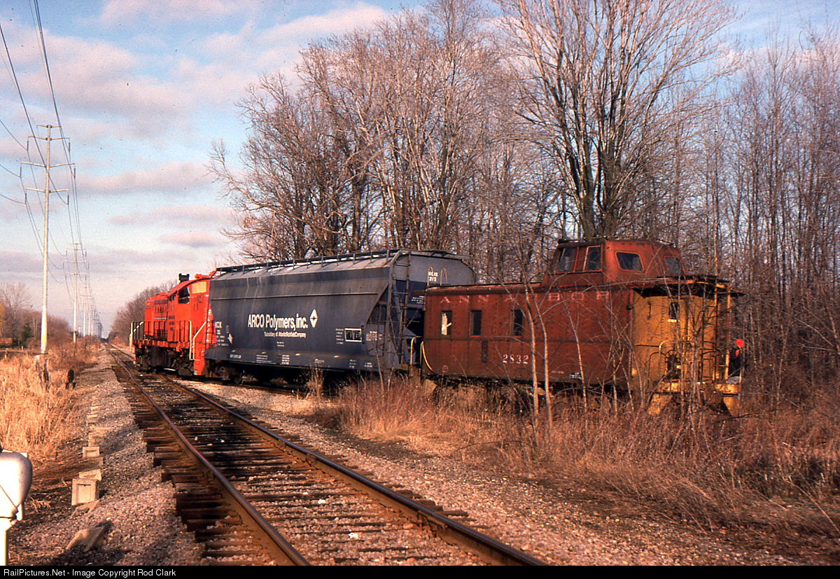 Has left Ann Arbor Ferry yard. AA RS 1 # 21 has crossed the diamond and is now backing up and getting onto the old abandoned EX NYC Ypsilanti branch here at Pittsfield Jct. The former depot sat behind the caboose here. They will be pushing that hopper car all the way to the Ford plant in Saline Mi.