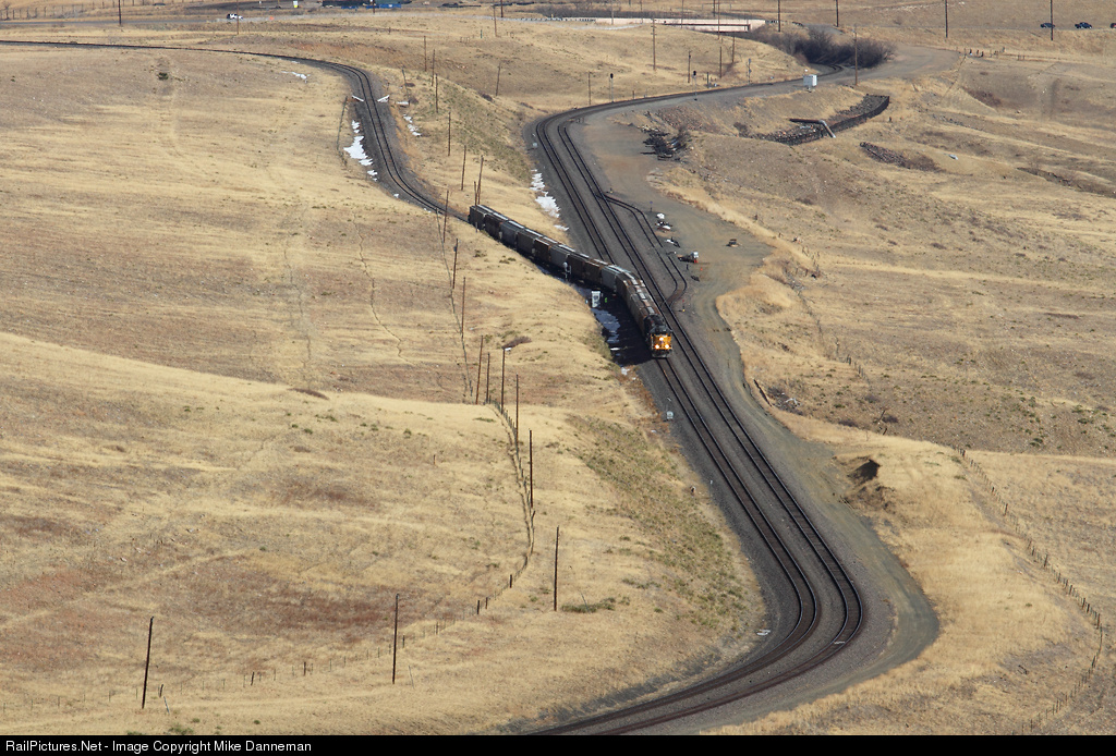 With the main line clear of traffic, Union Pacific’s West Local drops off the grade on Rocky Spur (now known as Rocky Flats Industrial Lead) and enters the main at Rocky, Colorado, on the afternoon of March 2, 2011. Just to the right is 7,330-foot Rocky siding and adjoining house track.