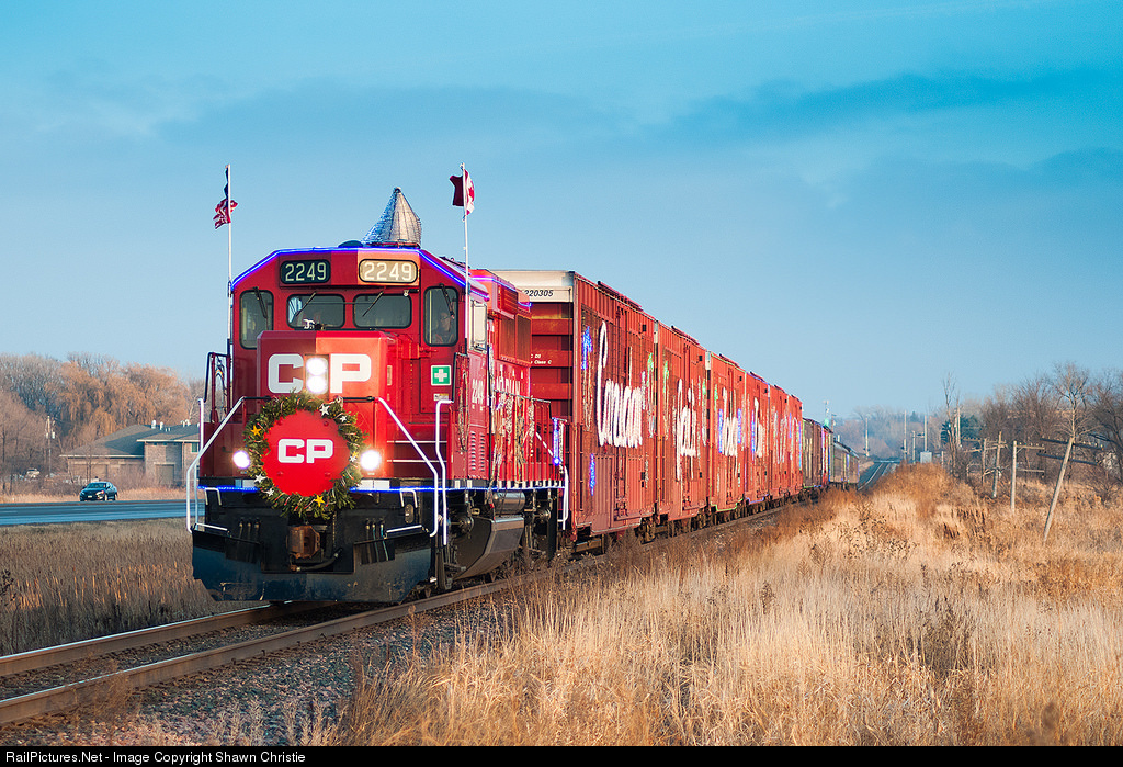 CP 2249 leads the 2014 CP Holiday Train under some nice late afternoon sun. Next stop is Loretto for the first show of the day.