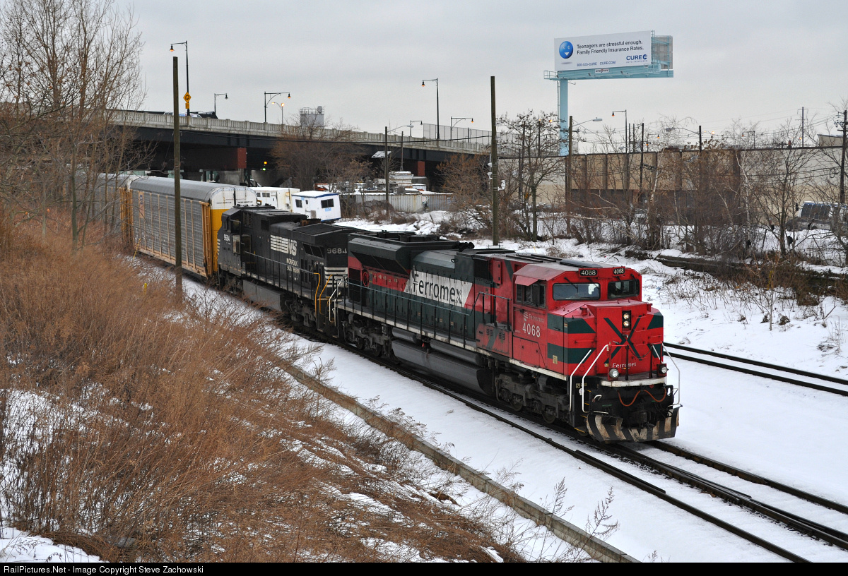 NS 290 arrives at it's terminating point in Jersey City with a rare visitor to the Garden State, a Ferromex SD70ACe. While the weather couldn't have been worse, with a mix of freezing rain and sleet coming down all morning the unusual sighting certainly made the trip trackside worth it. |